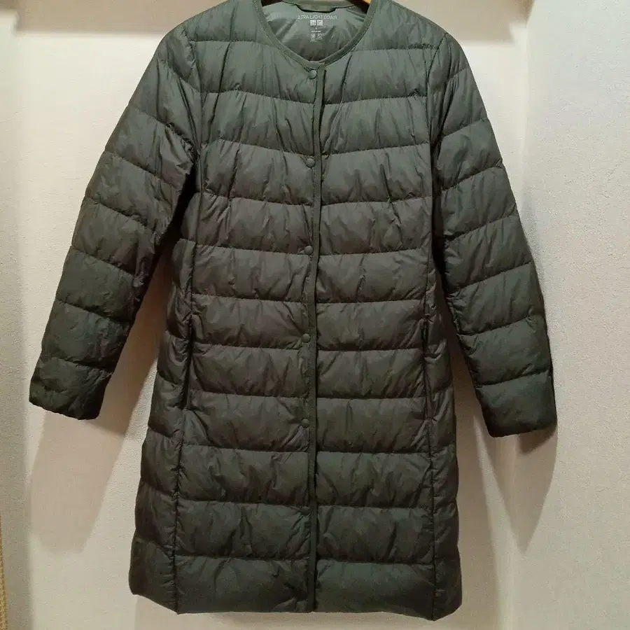 유니클로 울트라 라이트 다운 노카라 다운 코트 L 올리브