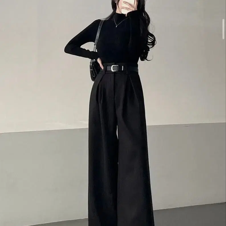벨트 포함 퍼 안감 와이드 투 턱 포켓 하이웨스트 슬랙스