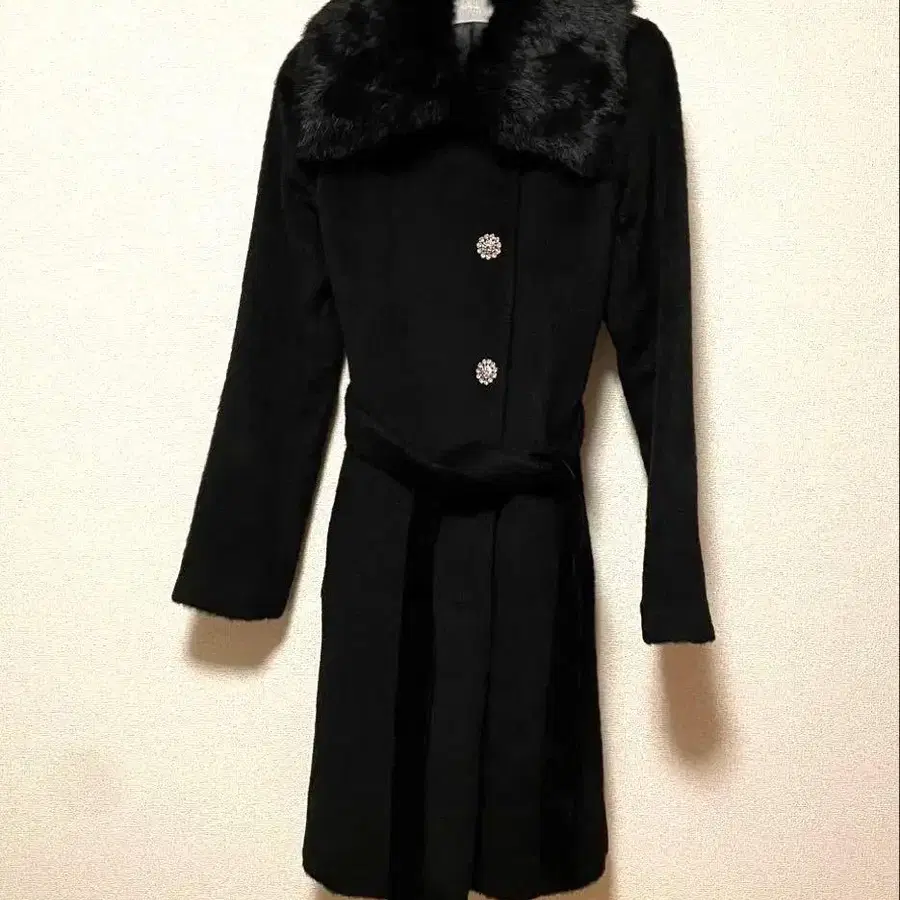 블랙 롱 코트 비쥬 버튼 퍼 포함