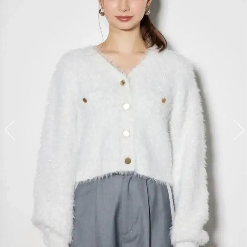 rienda 페이크 페더 라메 니트 자켓 가디건