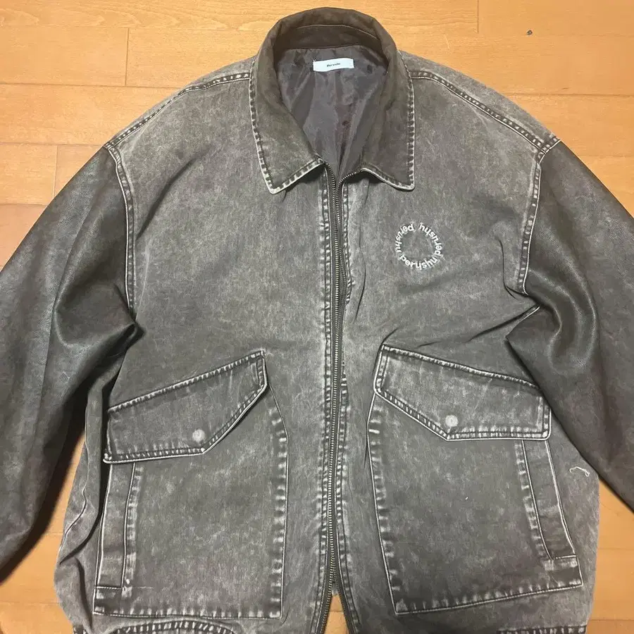 도킹 합성 가죽 더블 포켓 블루종
