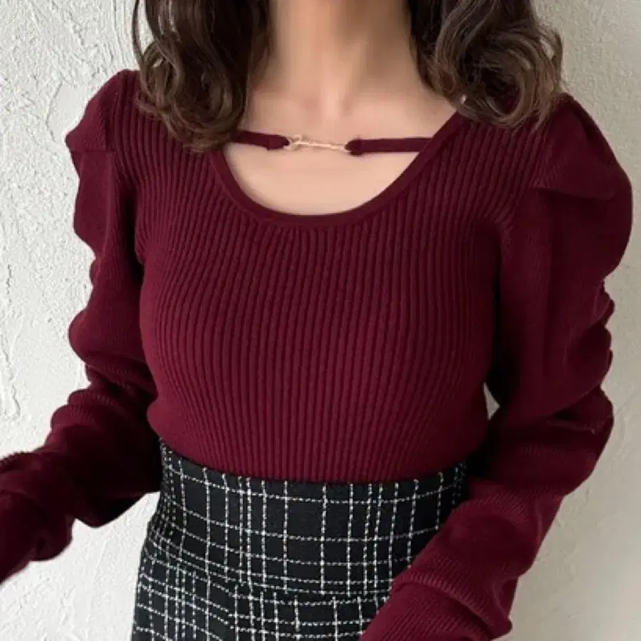 apres jour 아프레 주르 참 포함 파워 숄더 니트 보르도