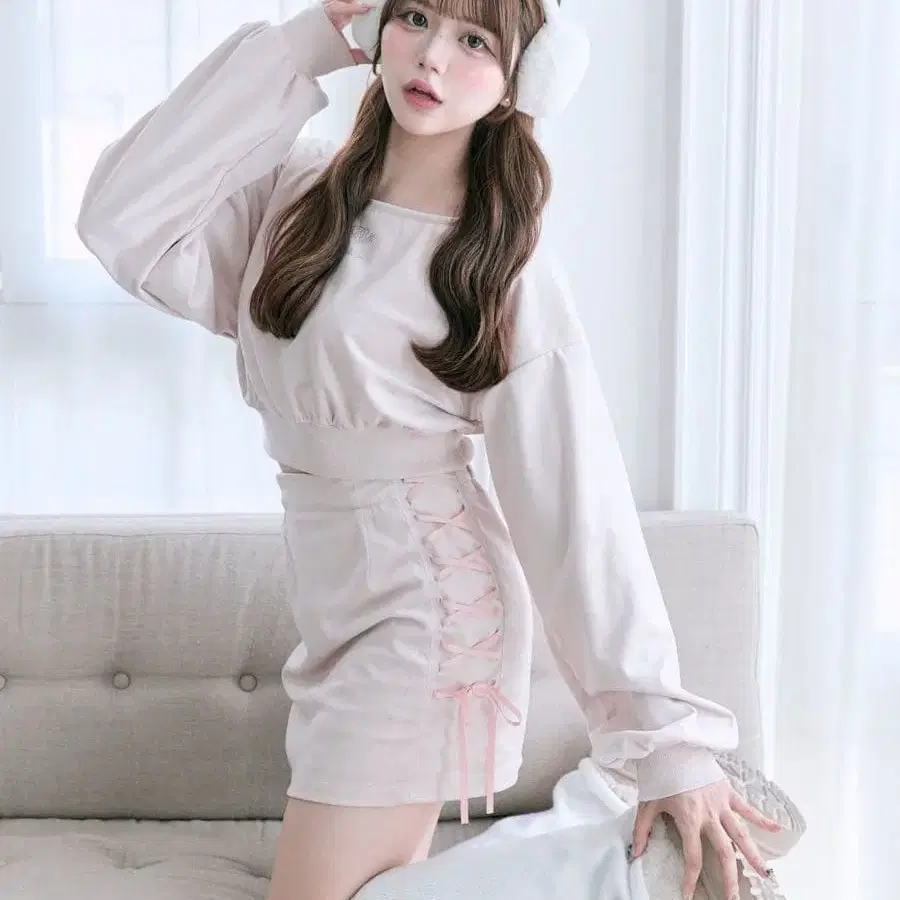 OLIVE des OLIVE Belle Charme 리본 벨로아 셋업