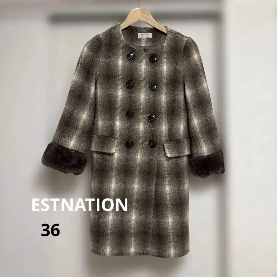 ESTNATION 에스트네이션 체크 무늬 노카라 체크 무늬 코트