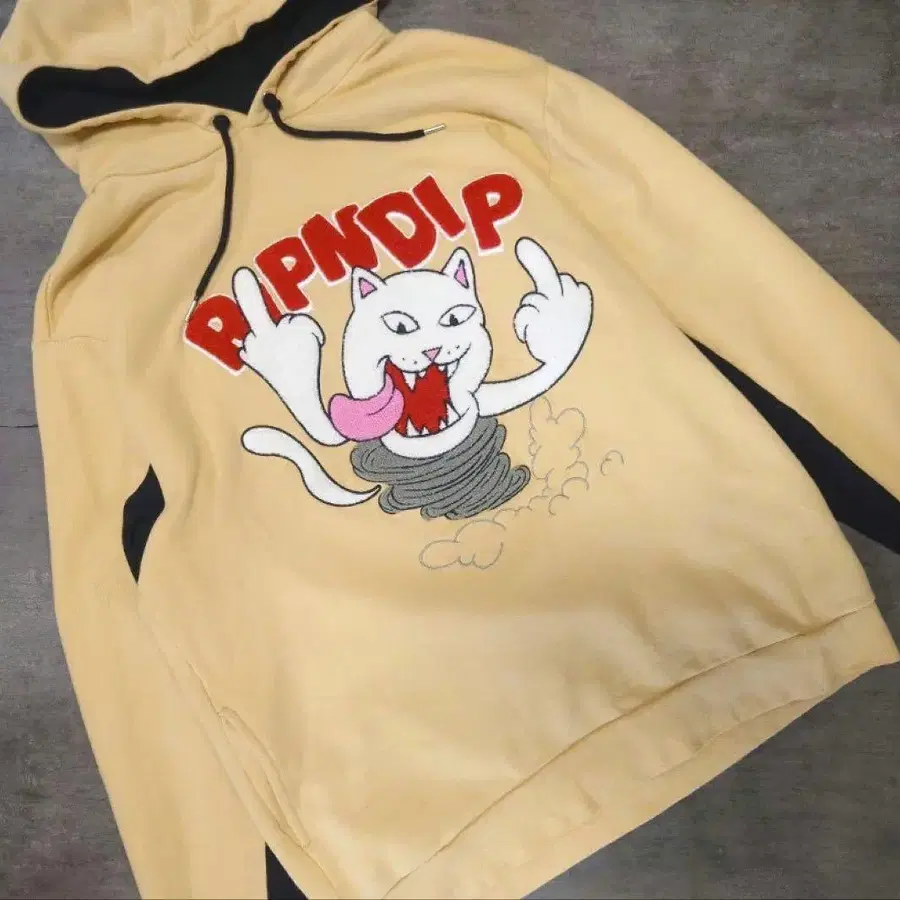 새상품급 RIPNDIP 파일 로고 풀오버 후드티 베이지