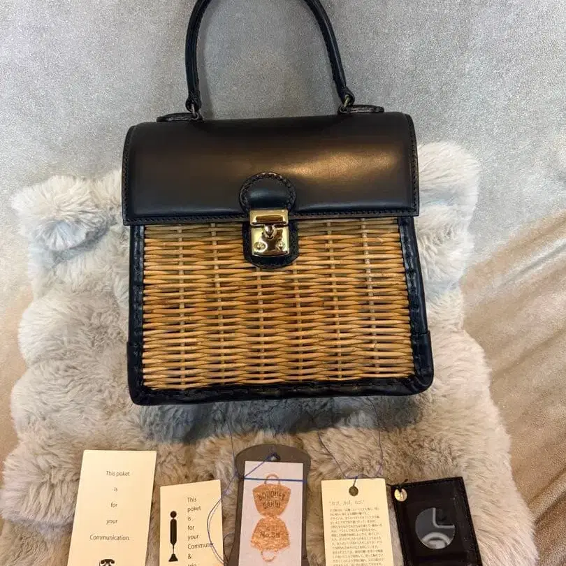 자동 번역되었어요. 원문보기라탄과 가죽의 콤비네이션이 특징인 핸드백. (미사용품)