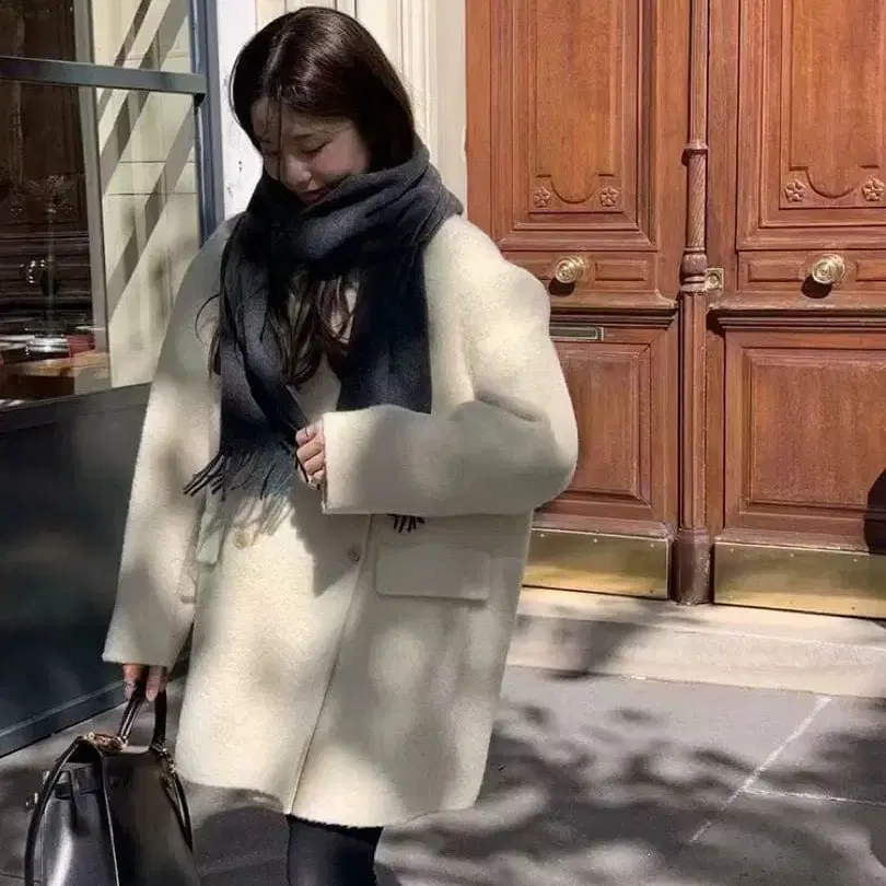 미사용품 크림색 울 코트