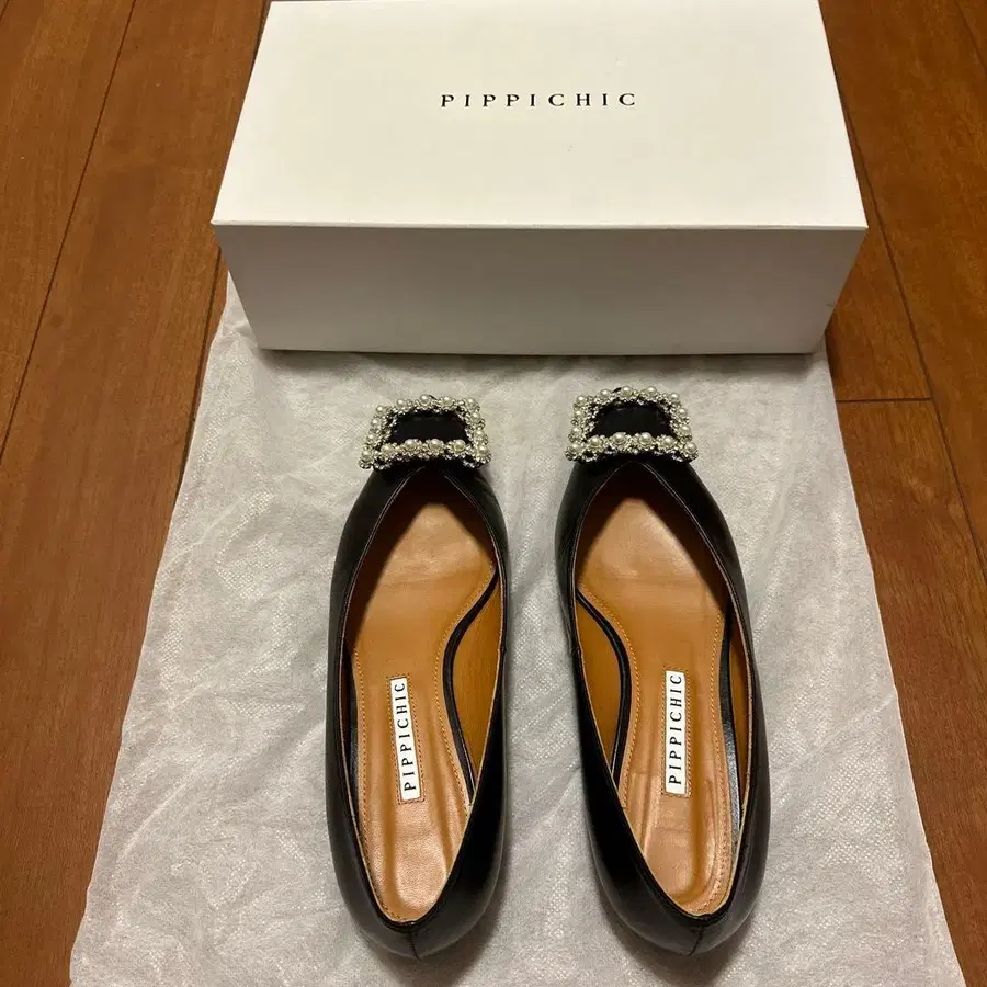 PIPPICHIC 펄 장식 블랙 플랫슈즈 37