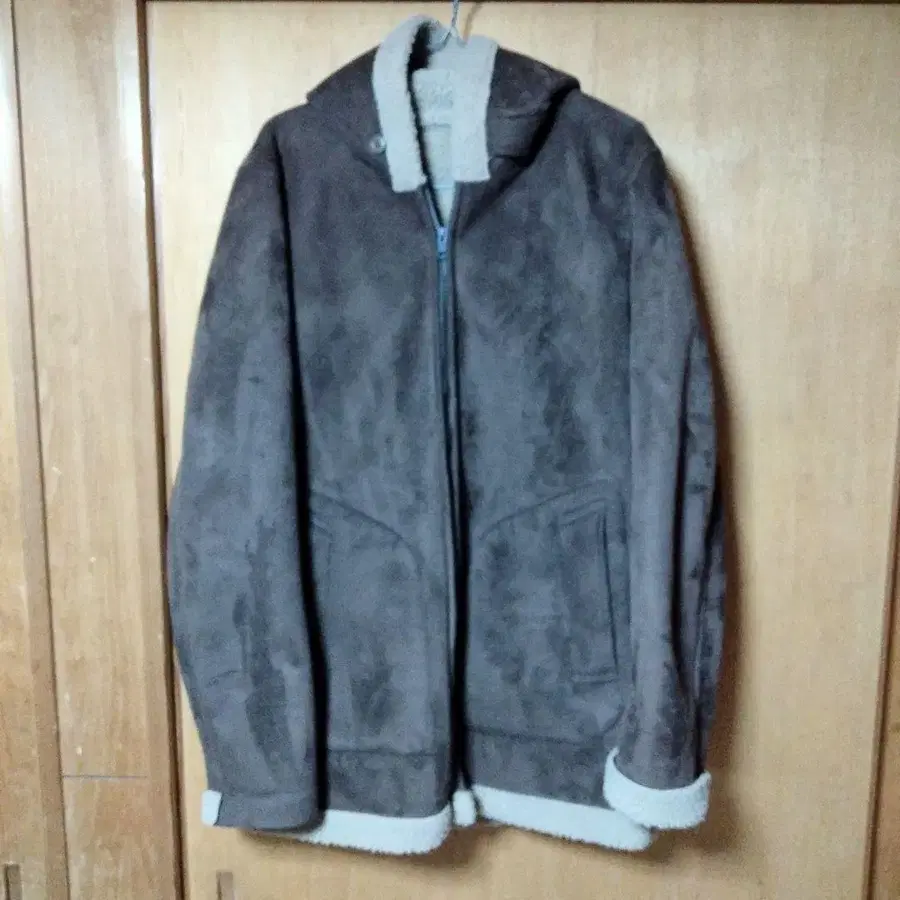 브라운 스웨이드풍 자켓 후드 부착