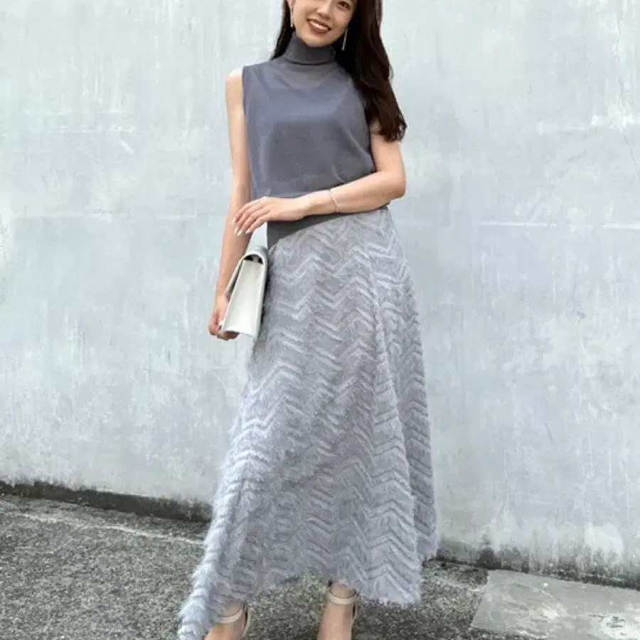 자동 번역되었어요. 원문보기컷 자카드 소재의 돋보이는 스커트와 적당한 시어한 느낌이 고급스러운 니트 탑 세트입니다.