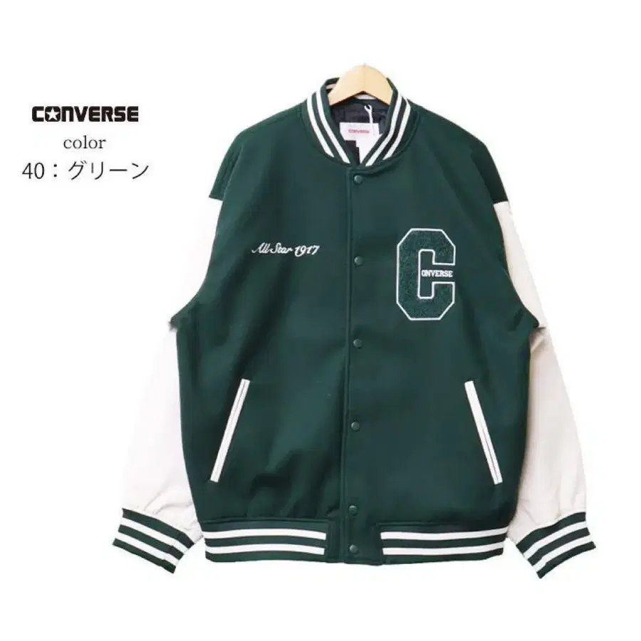 컨버스 바시티 자켓 M 사이즈 다크 그린