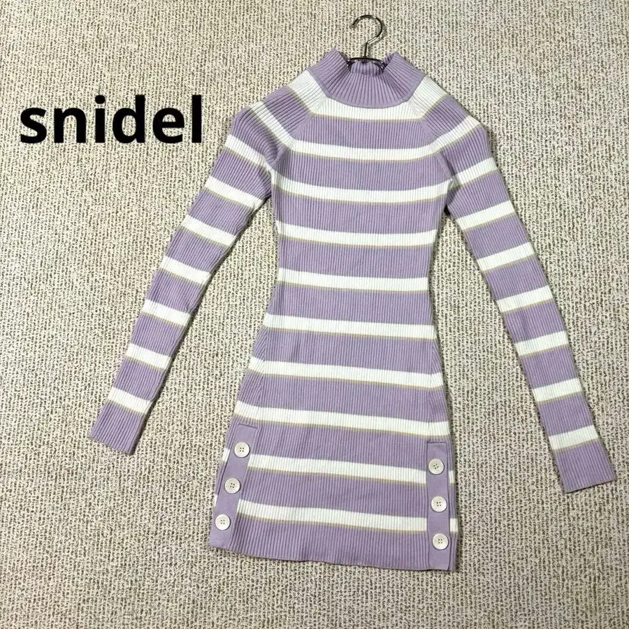 Snidel 보더 하이넥 타이트 니트 원피스 라벤더 프리 사이즈