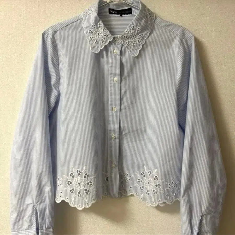 ZARA 컷워크 자수 스트라이프 크롭 셔츠