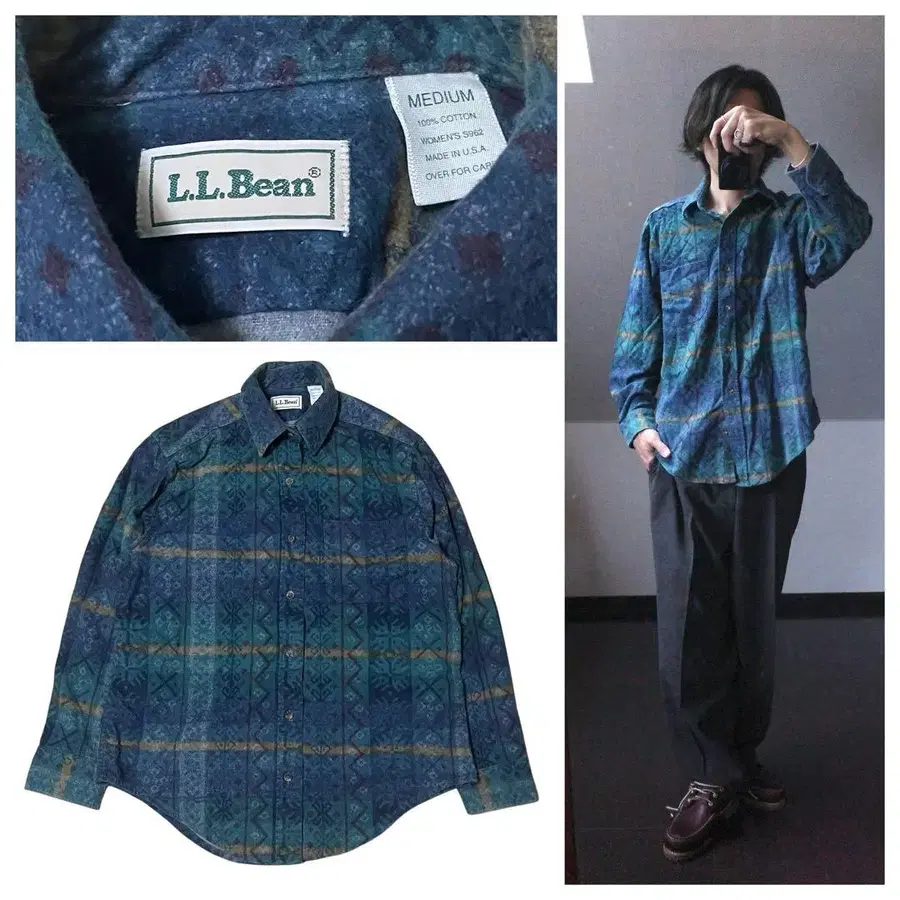 엘엘빈 올 패턴 플란넬 셔츠 USA제 코튼 네이비 구제 의류 M