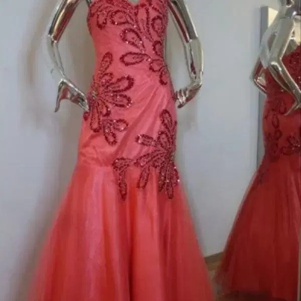 비즈 자수 워터멜론 컬러 드레스 새상품급