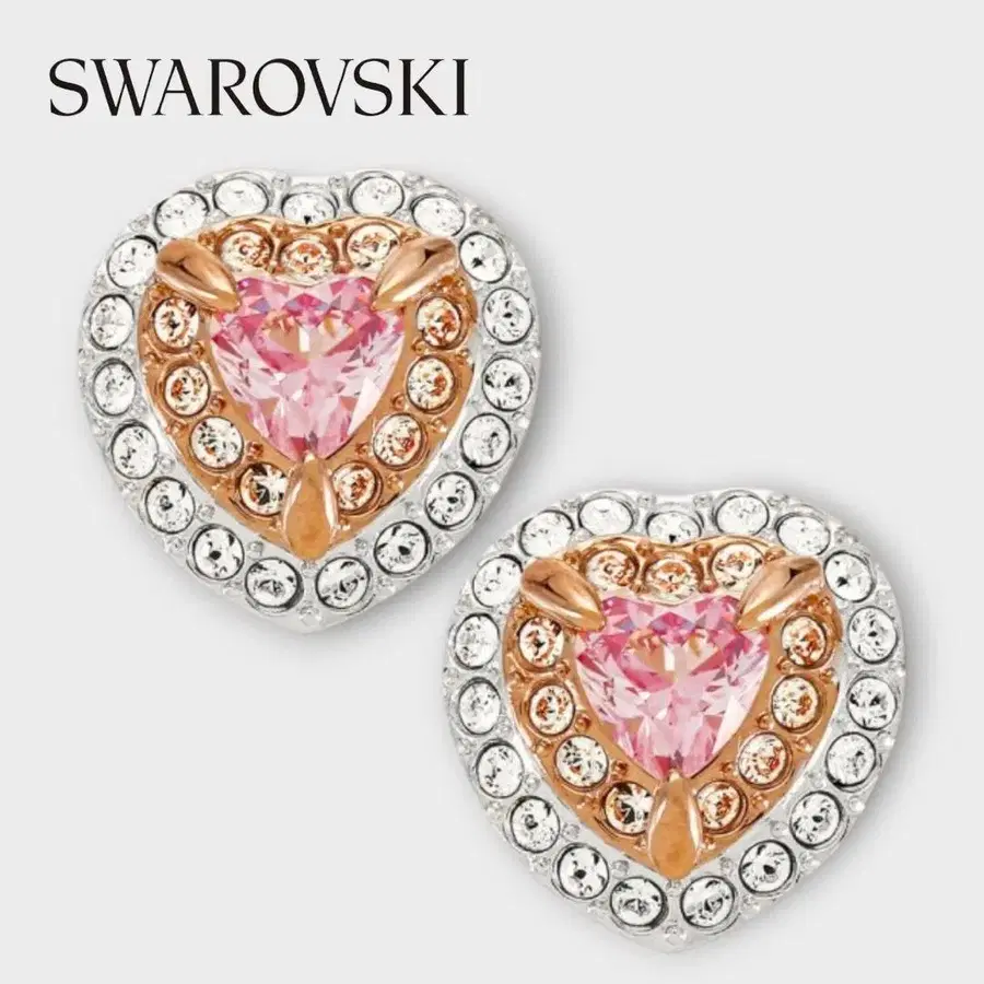 SWAROVSKI 스터드 귀걸이 하트 모티브 핑크 골드