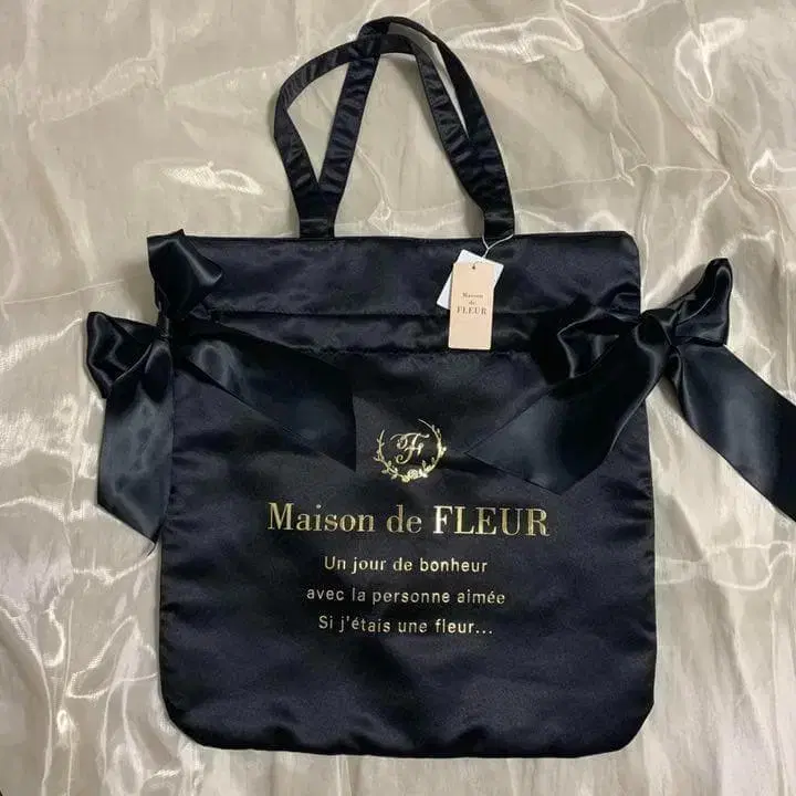 새상품 메종 드 플뢰르 더블 리본 토트백 블랙