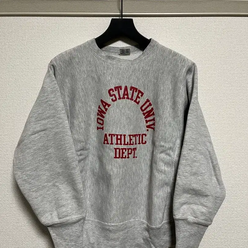 Iowa State Univ. Athletic Dept. 프린트가 들어간 80년대 USA 제조 Champion 트레이닝복. - 브랜드: Champion - 스타일: 트레이닝복 - 색상: 그레이 - 디자인: Iowa State Univ. Athletic Dept. 프린트 - 사이즈: M - 소재: 코튼 90%, 폴리에스테르 10% 80년대 REVERS WEAVE는 90년대보다 가슴 너비가 넓은 것이 특징입니다. M 사이즈이지만, 사이즈감은 넉넉하게 착용할 수 있습니다. 기장은 M 사이즈인 만큼 짧게 착용할 수 있으며, 키 액세서리도 강조해서 보여줄 수 있습니다. 아메카지 패션이나 A라인 실루엣을 선호하는 분들께 강력 추천합니다. 구매 장소는 코엔지 가게에서 28000엔 정도에 구매했습니다. 상태도 좋고 거의 데드스탁으로 보관되어 있었다고 구매 시 점원에게 설명을 들었습니다. 가격 이상의 활약을 해줄 한 벌입니다. 방문해 주셔서 감사합니다.
