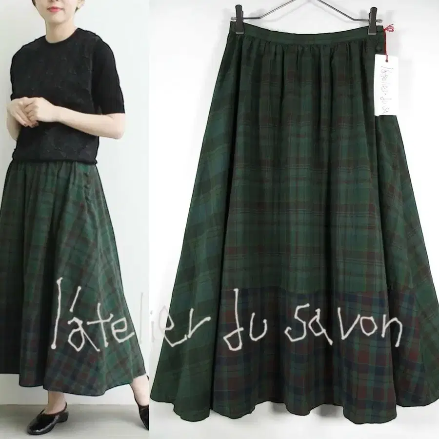 새상품 아틀리에 드 사봉 패치워크 체크 롱 스커트