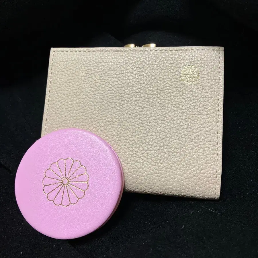 벚꽃 핑크 천연 가죽 가죽 접이식 지갑 핑크 컴팩트 거울 세트