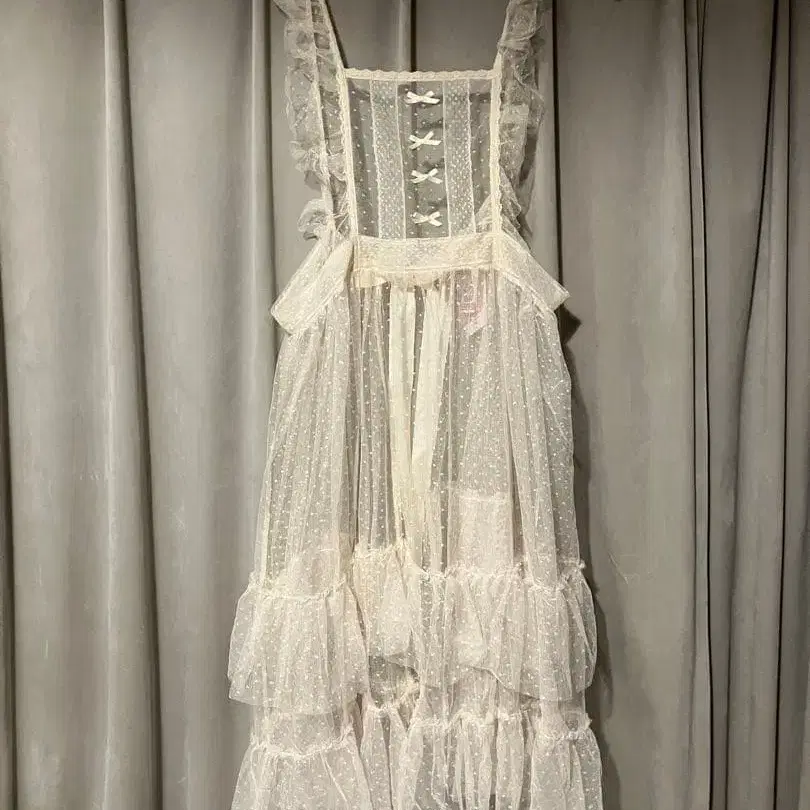 아오키 미사코 시마무라 도트 튤 리본 원피스 타브리에 에이프런 L