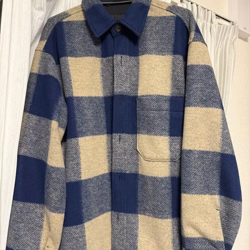 네이비 베이지 체크 무늬 자켓 M 사이즈