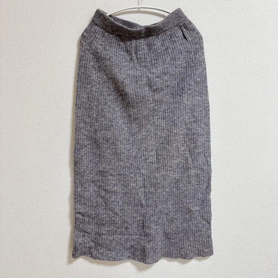 ATELIER SIX 리브 니트 타이트 스커트 허리밴딩 그레이