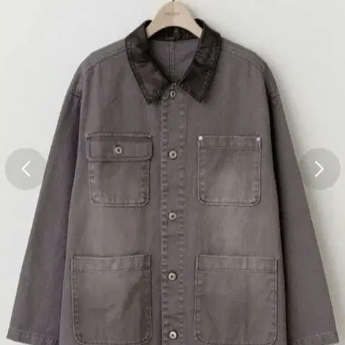 옷깃 부분에는 인조 가죽을 사용하여, 이 소재 믹스가 심플한 차림에 깊이를 더해줍니다.