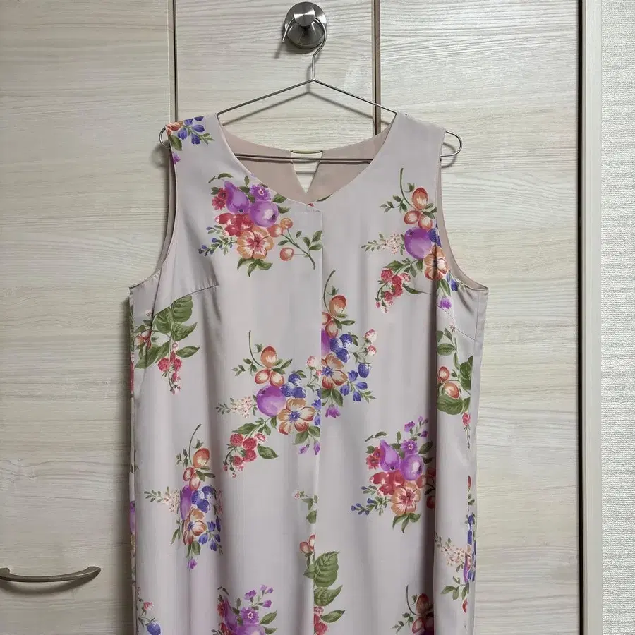 연한 핑크 꽃무늬 슬리브리스 원피스