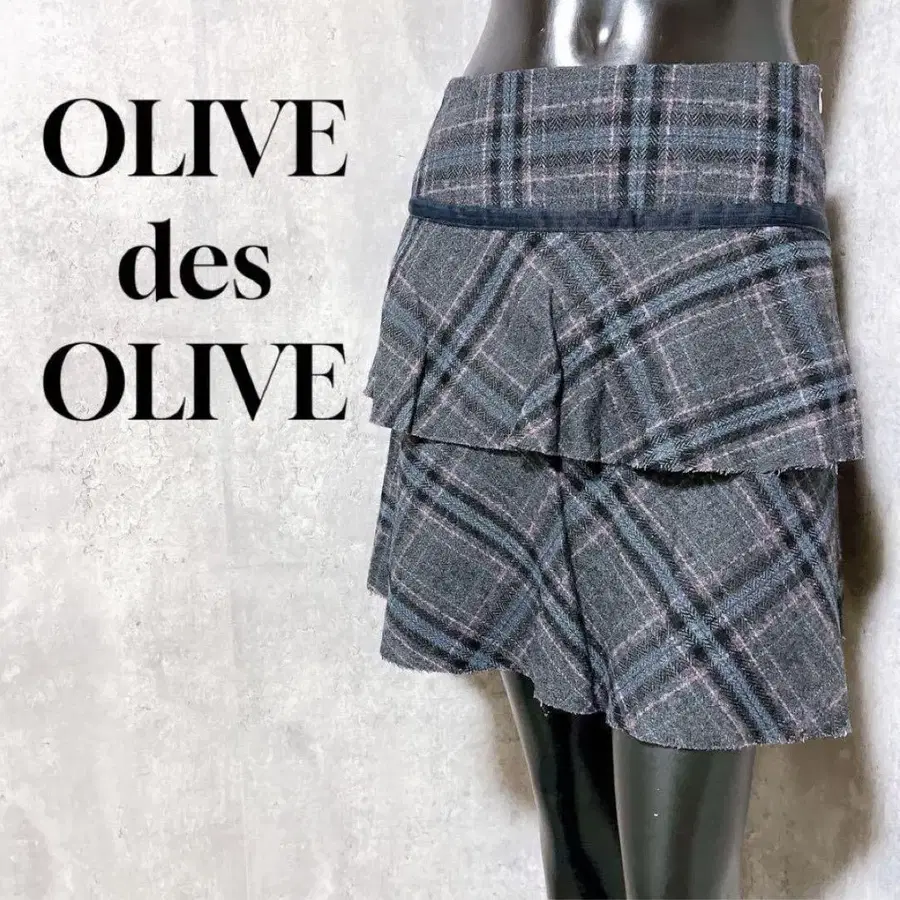 올리브 데 올리브 체크 무늬 플레어 스커트