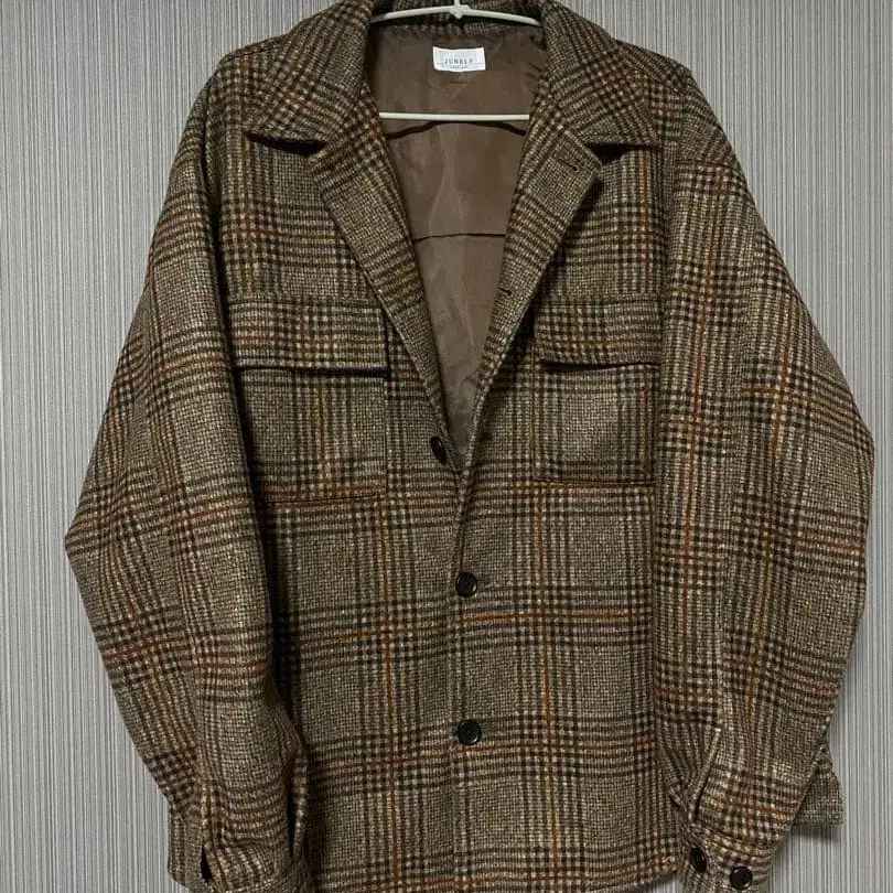 JUNRED 브라운 체크 무늬 자켓