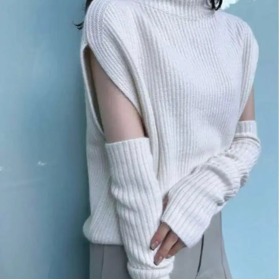 멀티 울 암워머 세트 니트 풀오버 아이보리 아뉴앙스