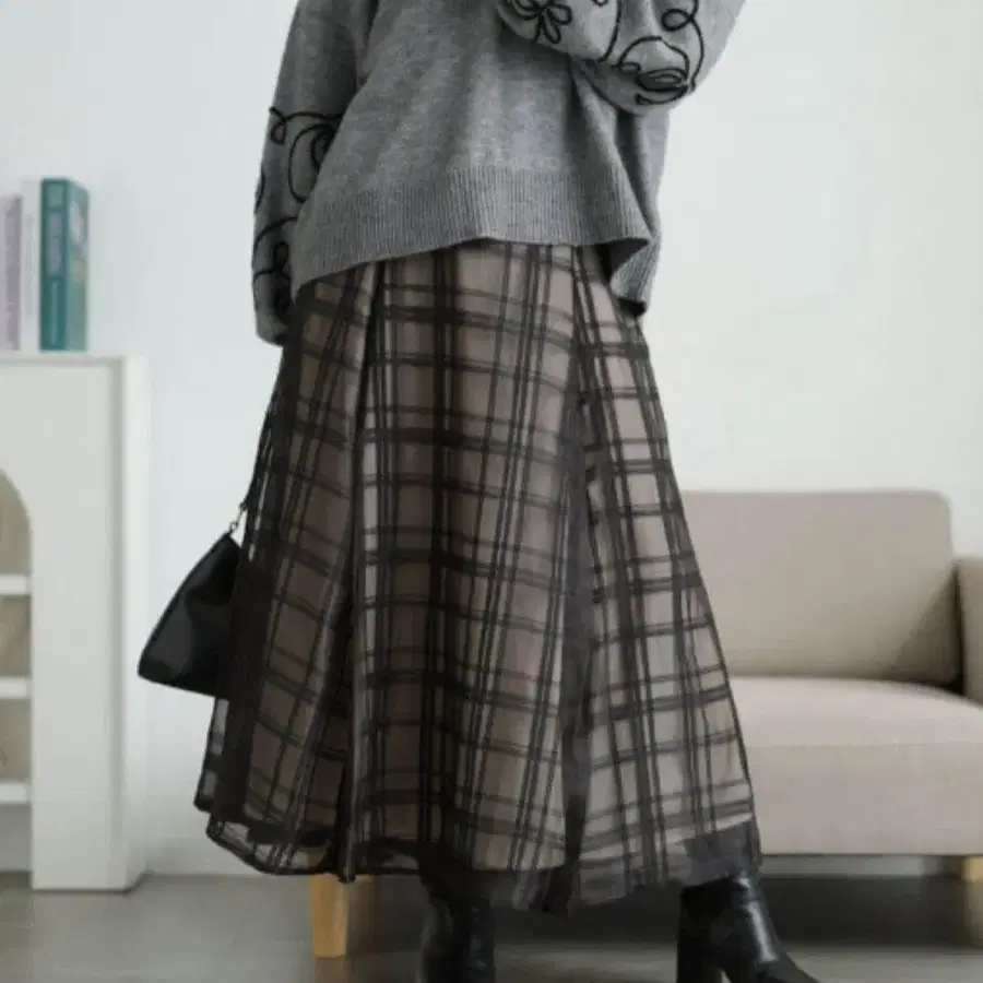 [골드재팬] 시어 체크 레이어드 플레어 스커트