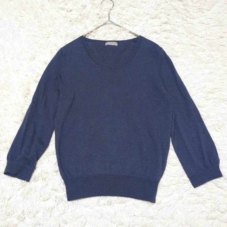 마가렛호웰 캐시미어 울 면 7부 소매 니트 크루넥 파랑