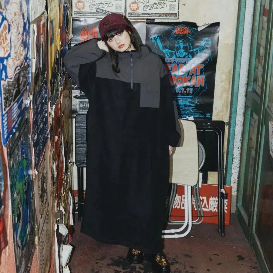 니코앤드 플리스 원피스 블랙 맥시 길이 방한 릴랙스