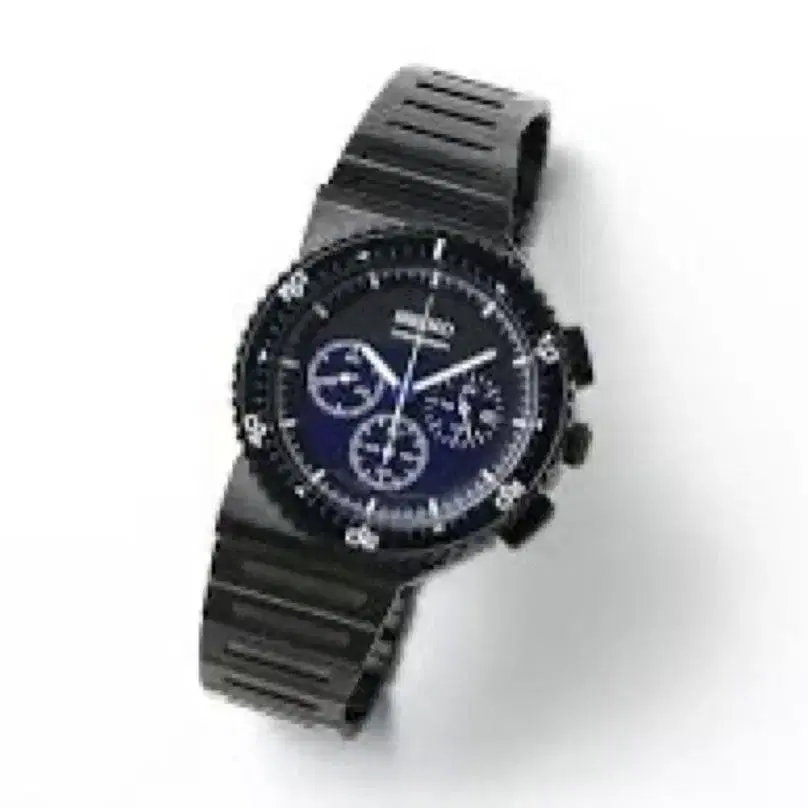 특징: 왼팔에 착용했을 때 조작하기 쉽도록 시계 중심과 밴딩이 오프셋된 비대칭 디자인이 특징입니다. 블랙과 네이비를 기반으로 한 컬러링이 적용되었습니다.