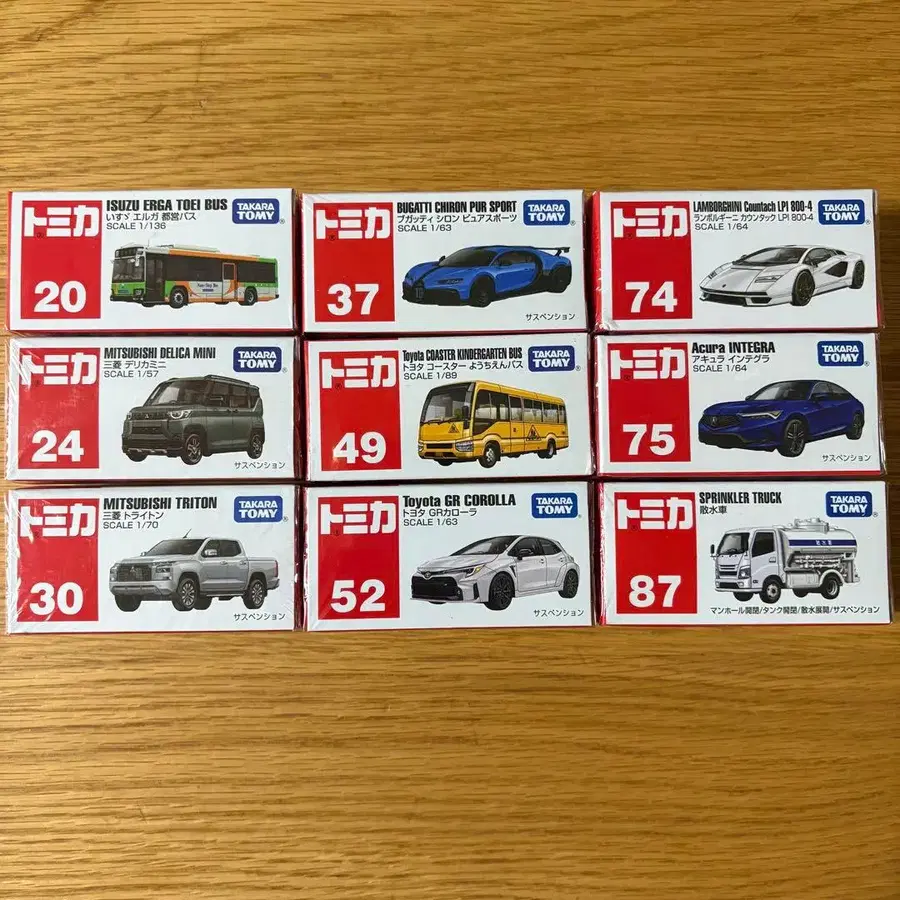 미개봉 새상품인 토미카 9대 세트입니다. 슈퍼카인 부가티 시론과 람보르기니 카운탁을 포함한 럭셔리 라인업입니다.
