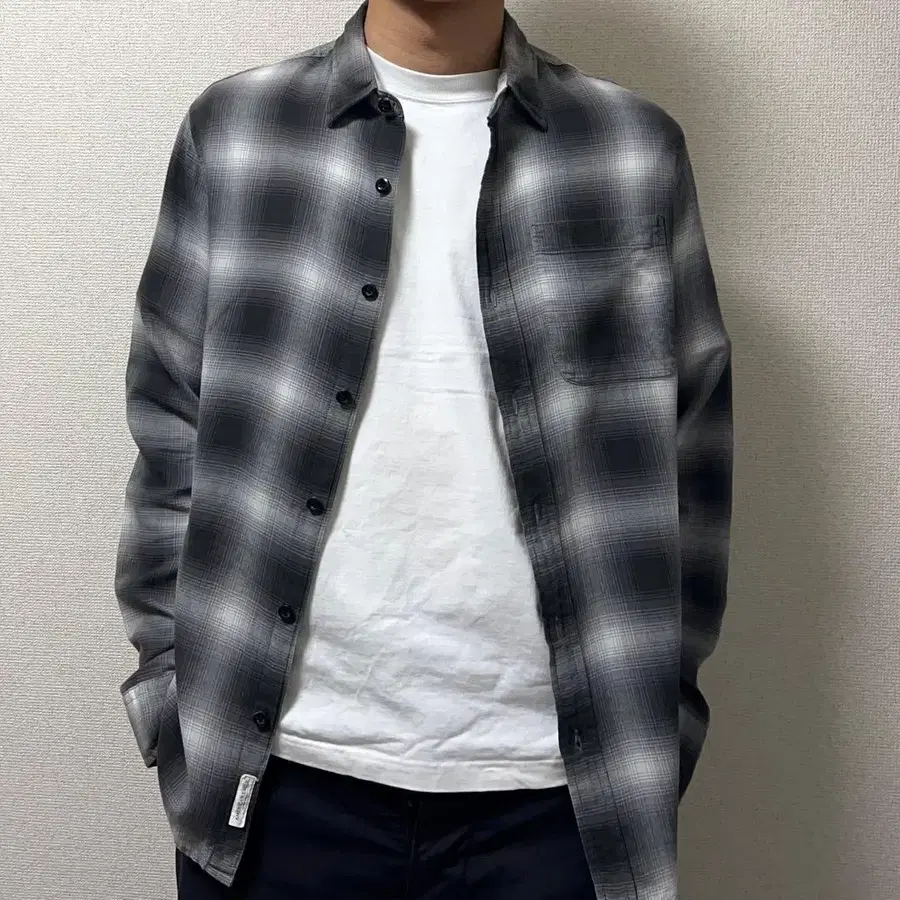 AMERICAN EAGLE 옴브레 체크 플란넬 셔츠 블랙 S