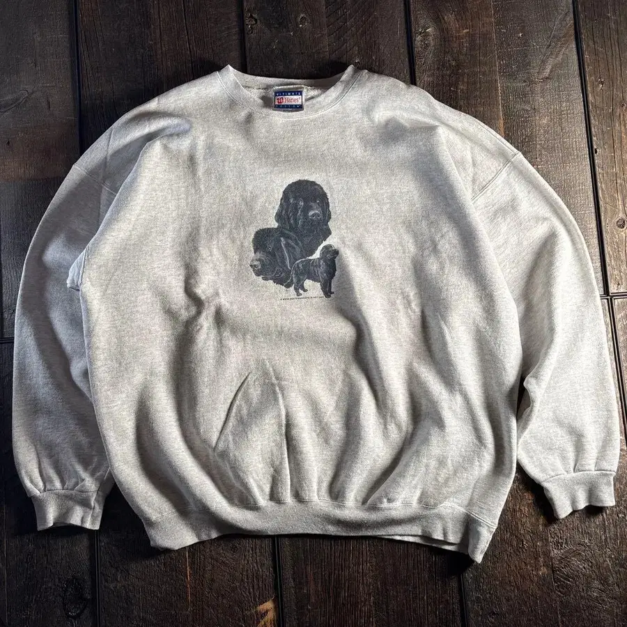 뉴펀들랜드견이 완벽한 밸런스로 프린트된 Y2k 00s 맨투맨