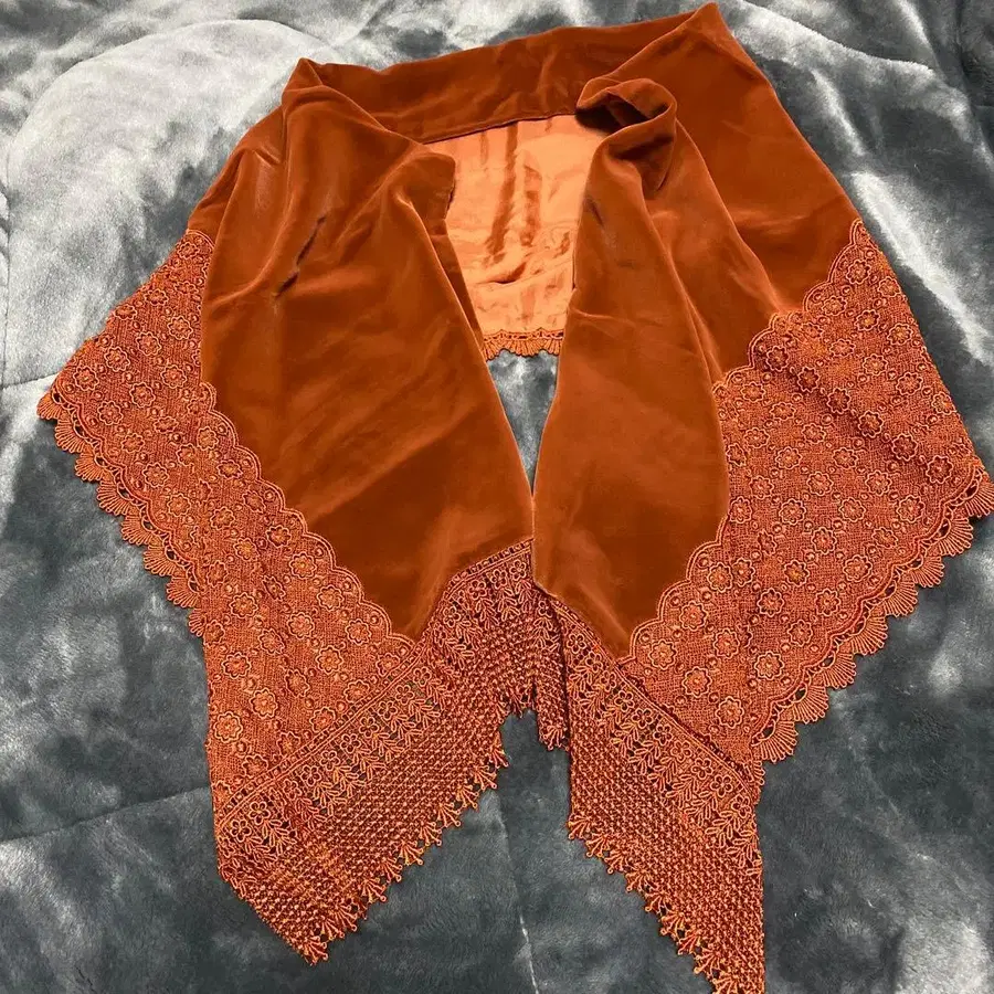 쇼와 레트로 벨벳 오렌지 컬러 레이스 니트 스톨