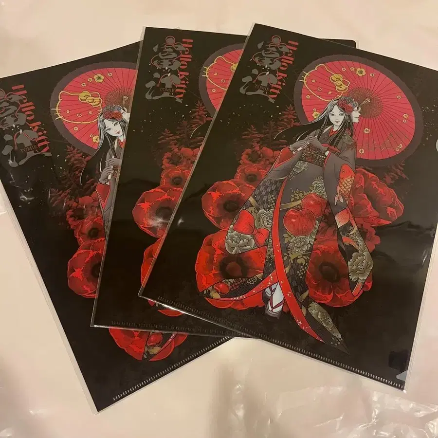 이토 준지 x 산리오 캐릭터즈 기모노 토미에 x 키티 클리어 파일 3매
