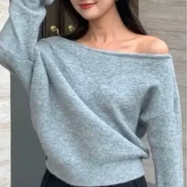 벌스데이 바쉬 오프 숄더 볼륨 니트 탑
