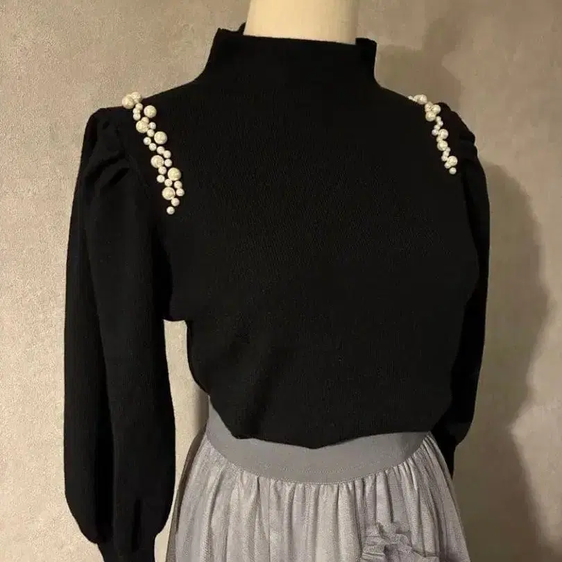 하프넥 펄 니트 블랙