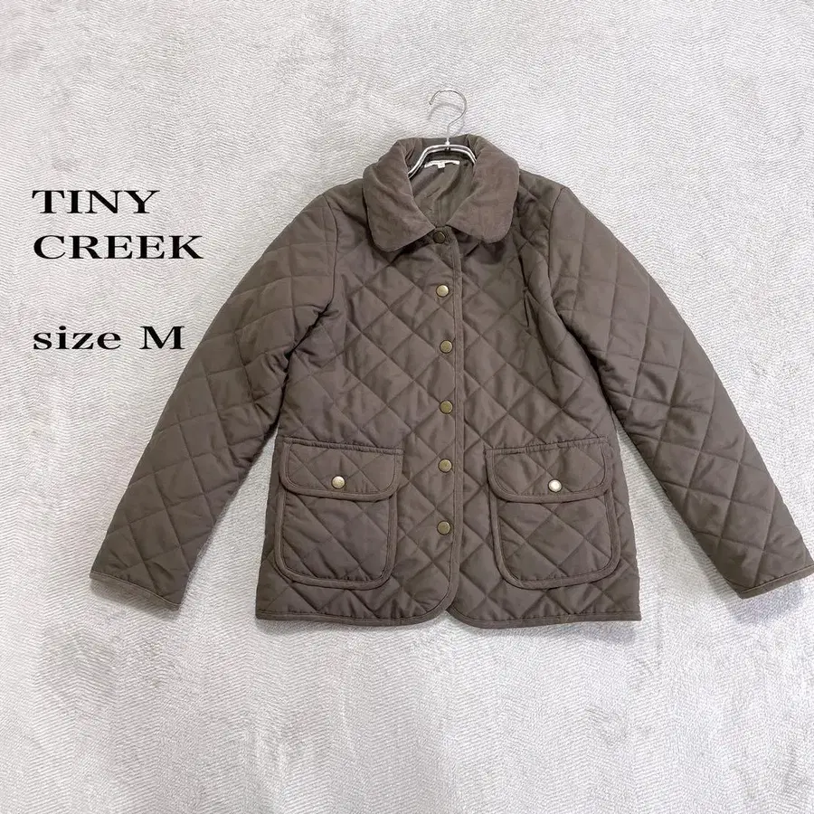 코듀로이 옷깃의 퀼팅 자켓, M 사이즈, 앞면에 포켓 2개 부착.