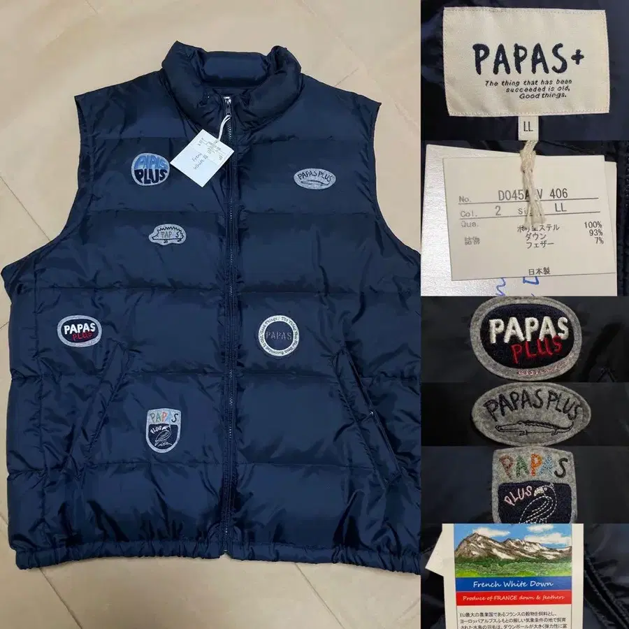 새상품 PAPAS + 파파스 다운 베스트 XL 네이비 일본제