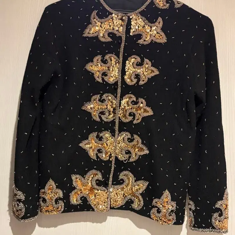 블랙 비즈 자수 고져스 가디건 38 쇼와 레트로