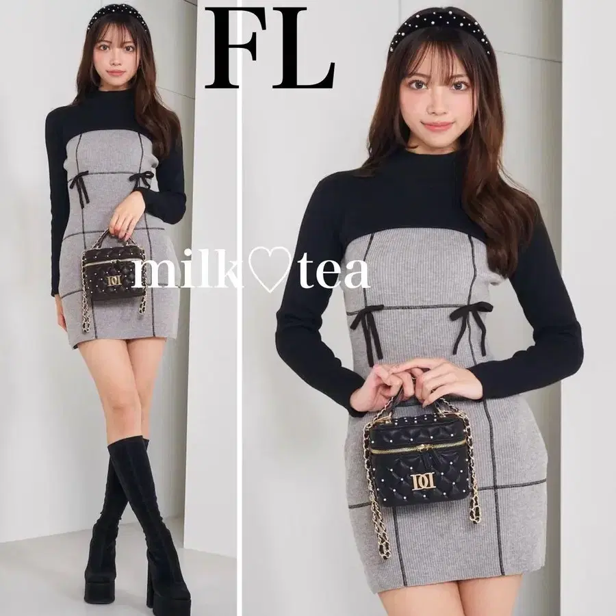 택 포함 새상품 다리치 도킹 리본 디자인 니트 미니 원피스 FL