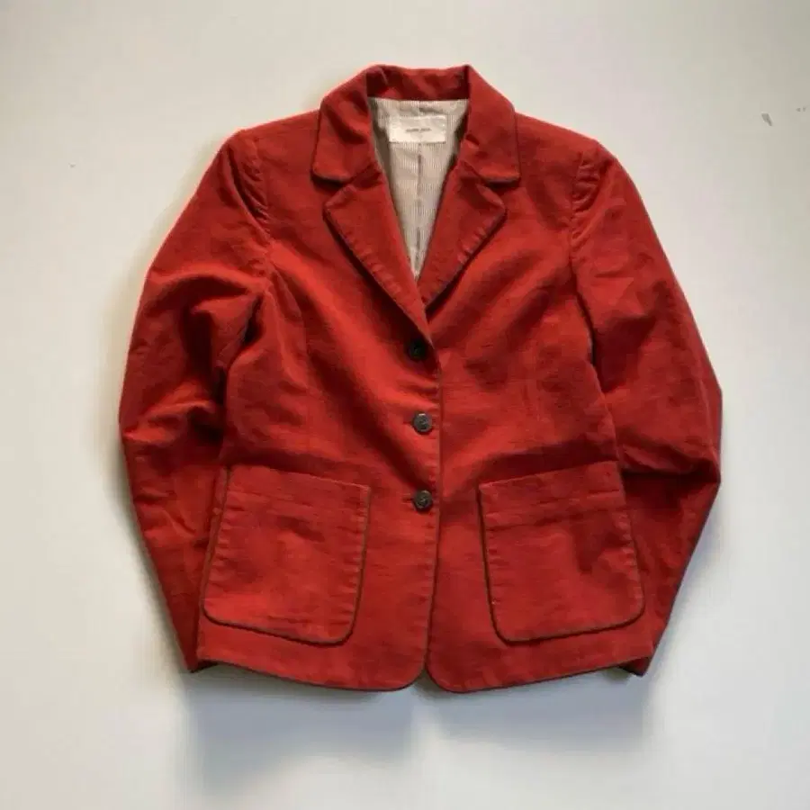 복고풍 느낌이 감도는 고급스러운 빨간색 테일러드 자켓. Peyton Place다운 섬세한 마감에, 안감의 스트라이프가 악센트를 더하고 있습니다. 차분한 색감과 적당한 기장감으로 스커트에도 팬츠에도 잘 어울리며, 가을/겨울 코디에 딱 맞는 한 벌입니다. 눈에 띄는 얼룩은 없지만, 구제 의류 특유의 질감을 이해하신 후 구매해 주세요.