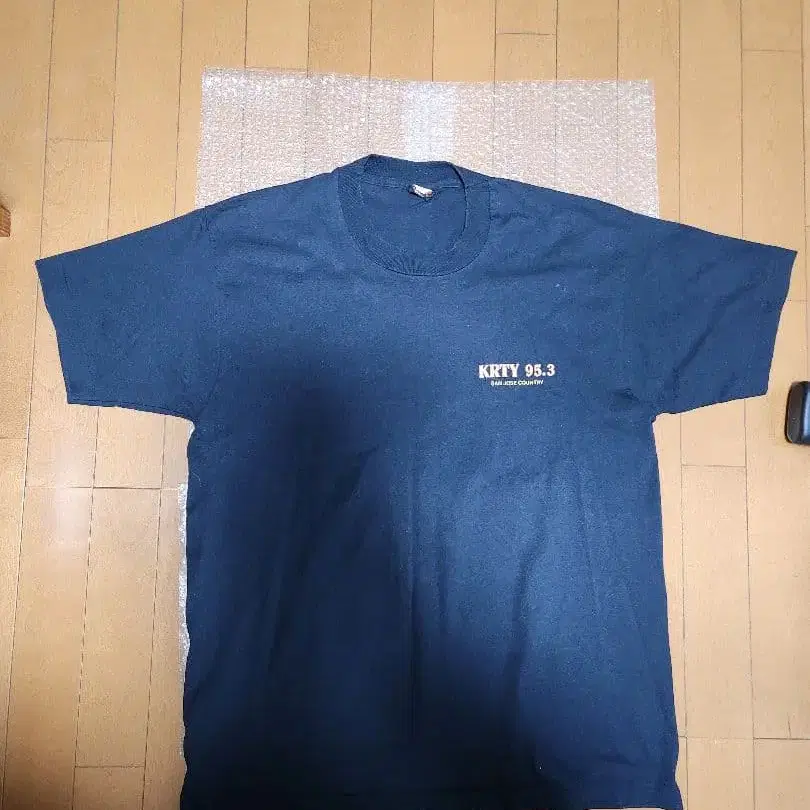 자동 번역되었어요. 원문보기KRTY 95.3 로고가 특징인 블랙 T셔츠, XL 사이즈.