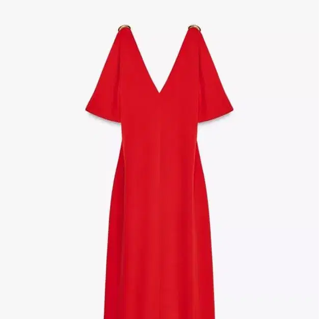 골드 아플리케 포함 레드 미디 원피스 XS